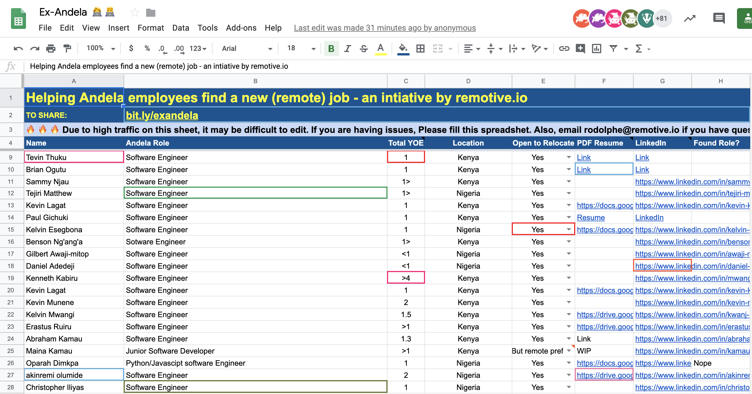 Add yourself to this spreadsheet, let's find you a job!https://t.co/ecOsz5ajdc 👩💻👨💻#Andela