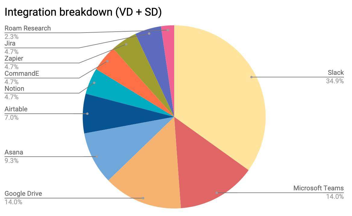 In April, we sent out a user survey to discover what exactly people need in a voice-first app like Yac. The result? Integrations were the most requested feature for Yac V2 by a mile. Even more surprising, ⅓ of our users specifically wanted a Slack integration.