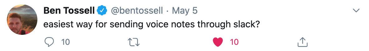 Our community rallied behind us, but Ben was spot on with his question. There truly aren’t any good Slack voice note solutions out there.