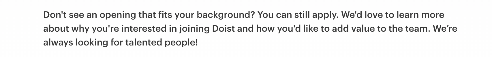 Don't let bad timing exclude top candidates! Make sure folks can sign up to a wait list of log a "Spontaneous applications".