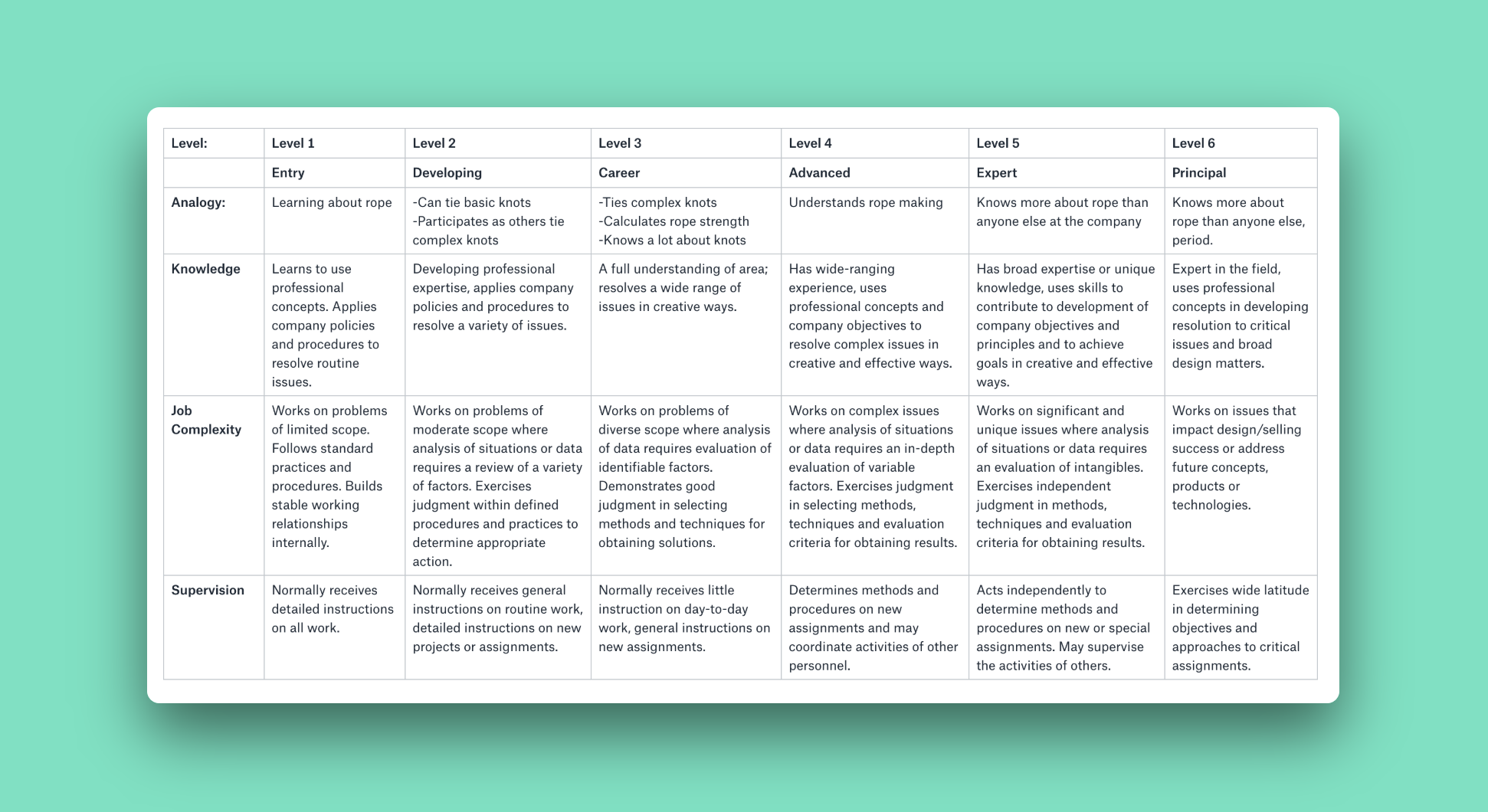 Remember that other startups have already done some heavy-lifting for you. For instance, Buffer open-sourced their career framework on this link.